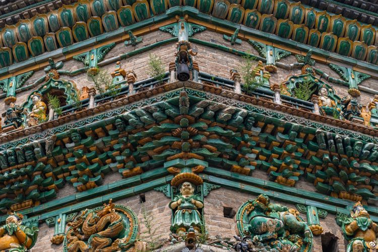 【广胜寺】位于山西省洪洞县县城东北17公里霍山脚下,寺始建于东汉桓帝建和元年(147年),原名俱庐舍寺,亦称育王塔院,唐代改称广胜寺。唐大历四年(769年),中书令汾阳王郭子仪撰置牒文,奏请重建。宋、金时期,广胜寺被兵火焚毁,随之重建。除上寺飞虹塔及大雄宝殿明代重建外,其余均为元代建筑。