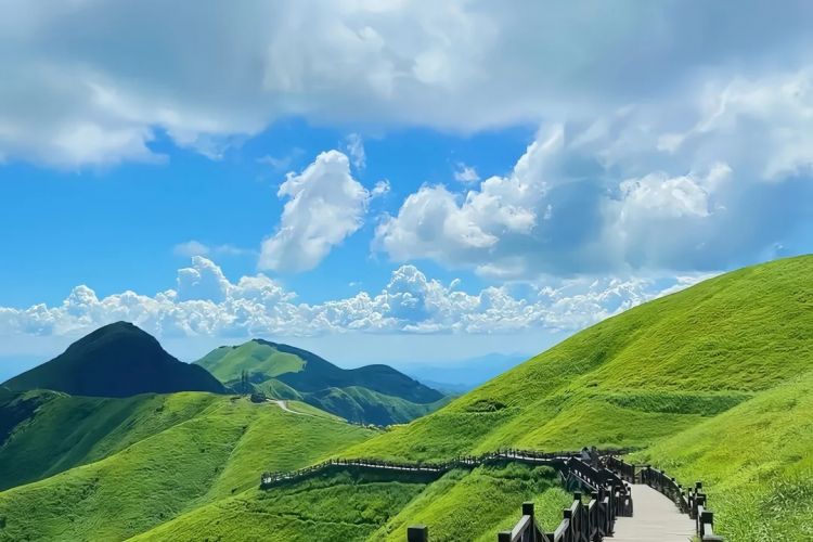 早餐后游览,最美云端的草甸,赏高山云海星空日出——【5A武功山景区】(赠送游览,游览约3小时,景区观光车+索道必消包含)位于中国江西省中西部,居罗霄山脉北支,主峰金顶海拔1918.3米。武功山有山岳型国家重点风景名胜区、国家5A级旅游景区、国家级风景名胜区、国家森林公园、国家地质公园、国家自然遗产、中国青少年户外体育运动营地等 。2009年,武功山被中国国家地理评为中国十大“非著名”山峰之一。武功山也是植物的天堂,整个武功山森林覆盖率达到88.1%,远高于我国、我省的平均水平(全国约21%,江西约63%),植被垂直分布的特征比较明显,在海拔1300米以下主要是阔叶林:竹林、茶树,、银杏、香枫等·,武功山的黄山松群落,有些成群,有些点缀在草甸之间。海拔1600米以上就是厚厚的高山草甸区,与高山相互交映,形成一道独特的风景。武功山自古以来就是人们心目中的一座祈福之山,民众登武功山祈福文化已有两千多年的历史。武功山历史上曾与衡山、庐山并称江南三大名山,被冠以“衡首庐尾武功中”。武功山是道教名山,被列为修身养性的洞天福地。东汉时期,道教祖先葛玄、葛洪,三国时吴国大将罗霄都曾“安营扎寨”,后来许愿、祈福、养生、修道等的香客信士络绎不绝。